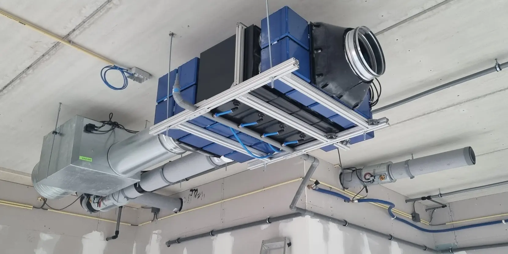 De tweede innovatie is de integratie van de technologie in een compacte plafondunit. De benodigde koelinstallatie is slim weggewerkt in het plafond, waardoor deze grotendeels uit het zicht blijft zonder in te leveren op prestaties. De decentrale opzet zorgt ervoor dat het comfortniveau per ruimte optimaal kan worden afgestemd op de specifieke behoeften. Tegelijkertijd blijven luchtkanalen klein, wat niet alleen het installatiewerk vermindert maar ook de flexibiliteit bij plaatsing verhoogt.