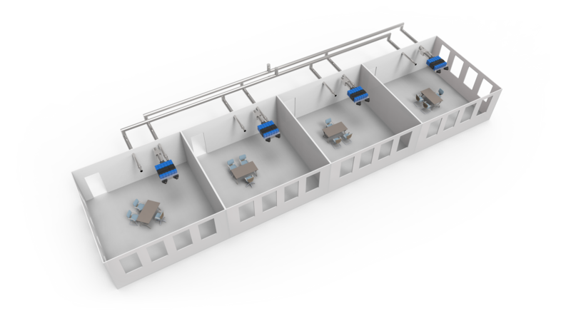 - Afvoer luchtkanalen vanaf iedere decentrale ICECUBE terug naar de centrale LBK.