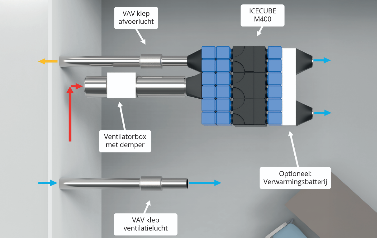 - Eventueel een verwarmingselement in de toevoerlucht van de ICECUBE.